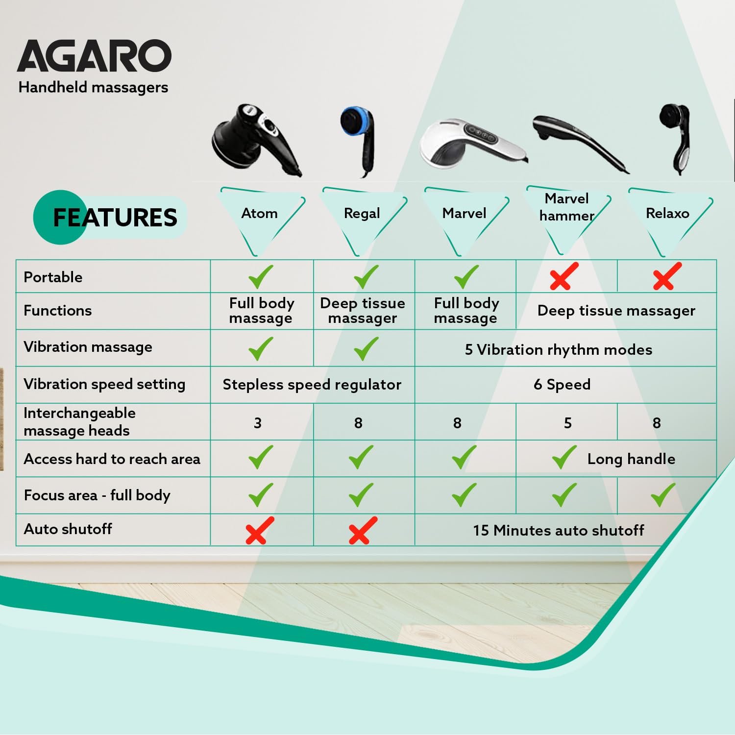 Compact handheld design;8 detachable message heads for a holistic body message
