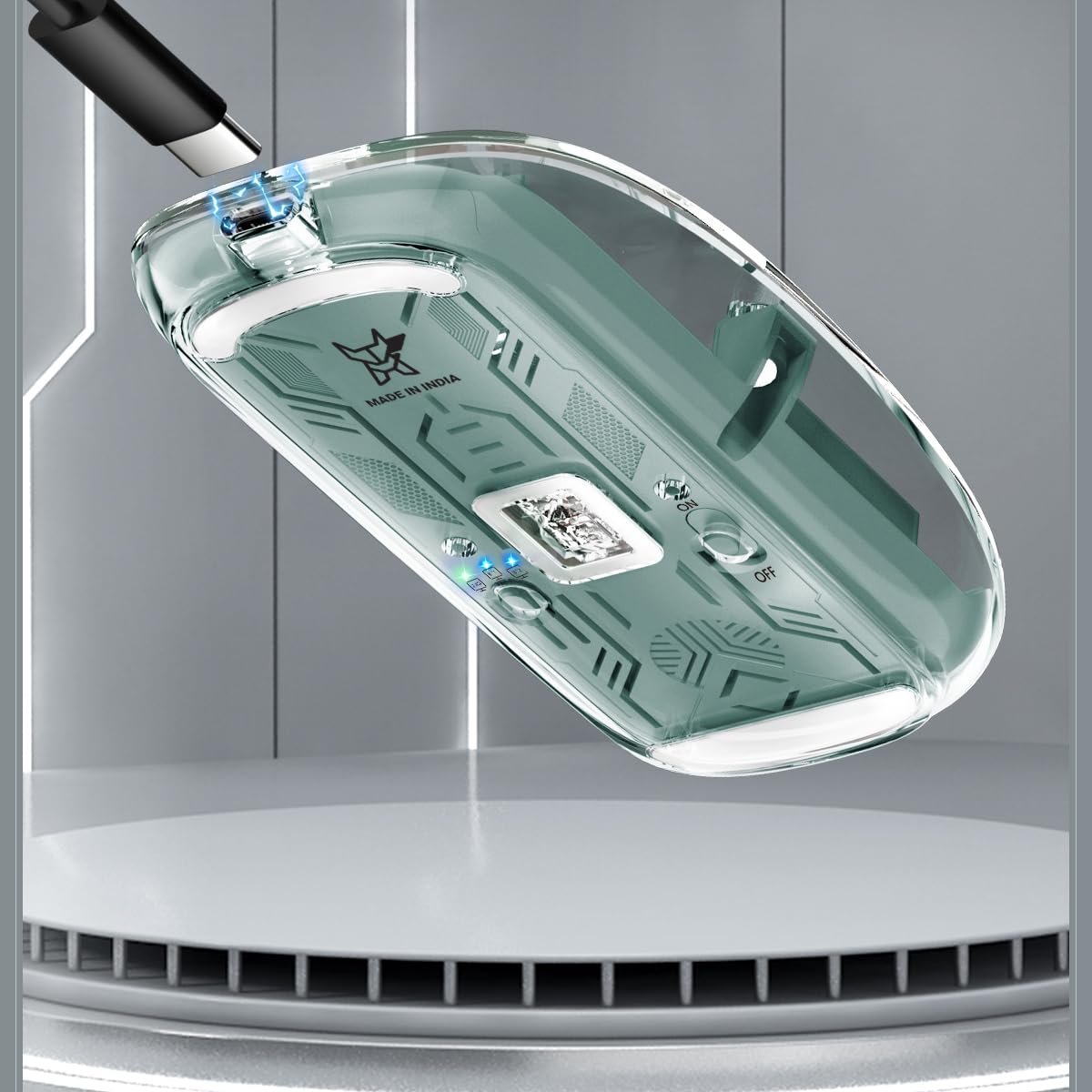 BUILT IN RECHARGEABLE BATTERY :: The AF transparent mouse features a built in high-performance rechargeable 400 mAh battery, providing an impressive 30 days of usage on a full charge. The automatic hibernation mode minimizes power consumption, effortlessly awakening with a simple button click.
