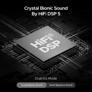 Crystal Bionic Sound with Dual Modes- These true wireless earbuds have Crystal Bionic Sound powered by Hifi DSP 5 which support dual eq modes: boAt Signature Sound and boAt Balanced Sound