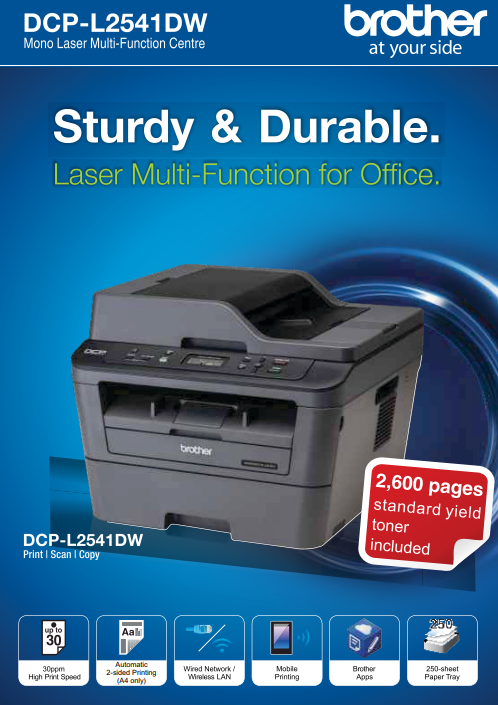 Auto 2-sided (Duplex) printing, 35 sheets Auto-Document Feeder (ADF), 2-line LCD, 2 in 1 (ID) Copy, 32 MB Memory, 250 Sheets Paper Tray