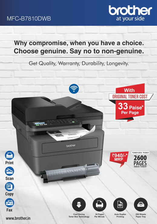 Brand: brother Model no.: MFC-B7810DWB Printer Type : Laser Printer Product: New Cartridge Colors: Black Warranty : 1 Year or As Per brother Service Center
