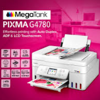 Brand: Canon Model no.: G4780 Printer Type : Ink tank Printer Product: New Printer Cartridge color : Black/Cyan/Yellow/Magenta Print, Scan, Copy Print Speed (A4, ISO): up to 11 / 6 images per minute (mono/color) Wi-Fi, AirPrint, Mopria, Direct Wireless Recommended Monthly Print Volume: 150 – 1,500 pages Warranty : 1 Year or As Per Canon Service Center