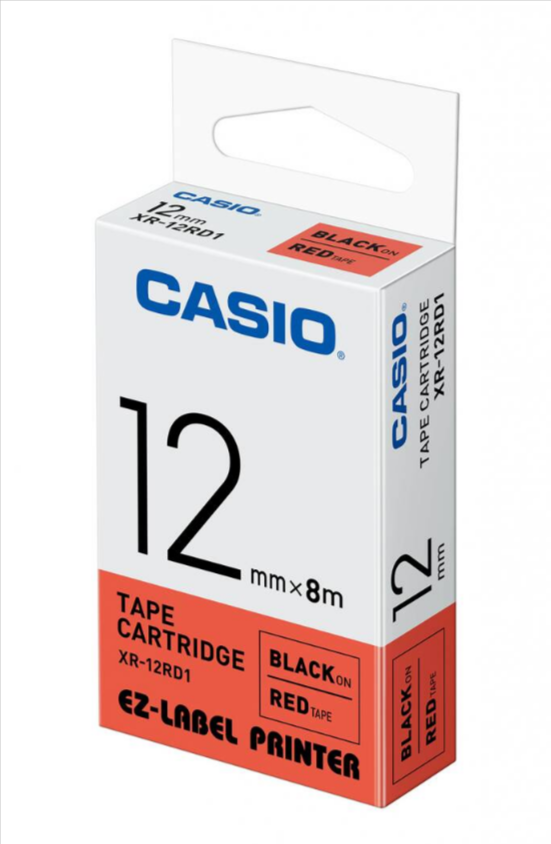 Color tape. Black text on red tape. 12mm wide, 8m long.