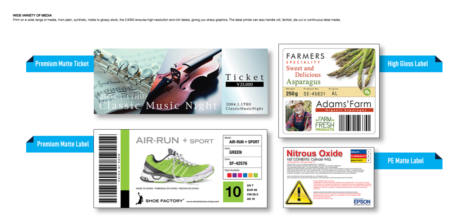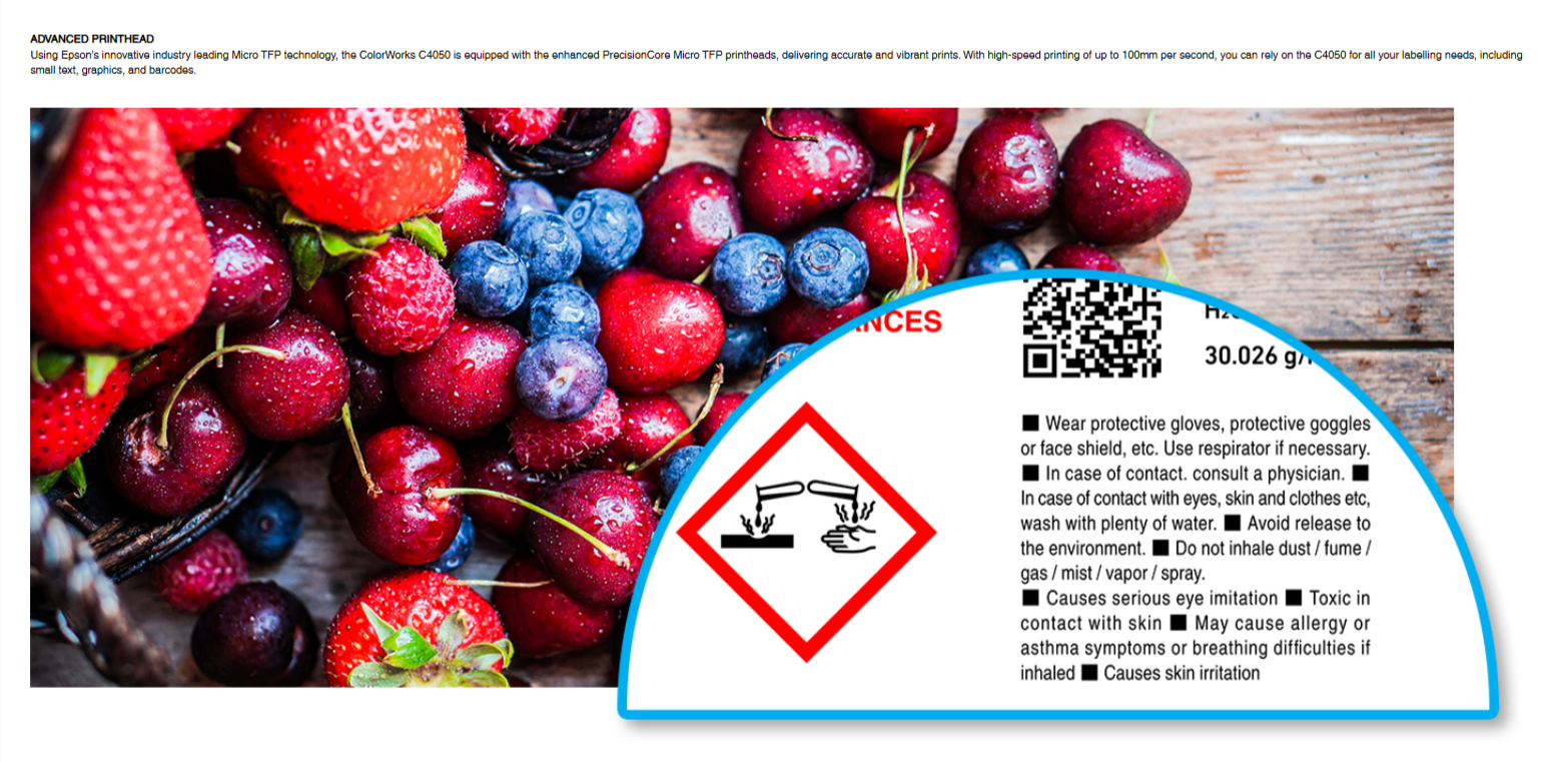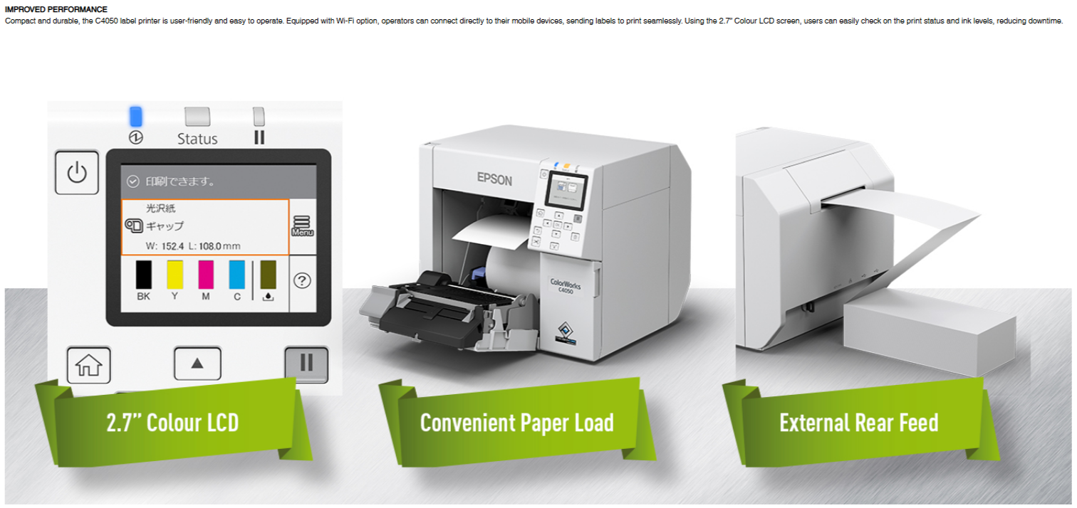 Equipped with new and improved PrecisionCore Micro TFP printheads, Epson’s C4050 colour label printer is the perfect solution for industrial, F&B, warehousing, medical and other labelling applications. With increased efficiency thanks to its speedy print of up to 100mm per second, the durable C4050 delivers vivid, high quality, and high-resolution on-demand colour labels whenever you need them.