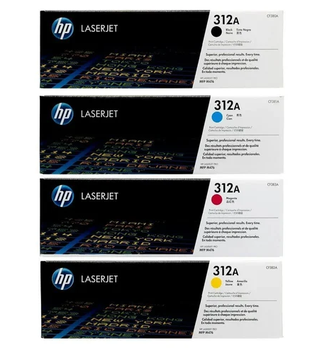 Brand: HP Model no.: CF380A,CF381A,CF382A,CF383A Part no.: 312A Cartridge Colors: Black/Cyan/Yellow/Magenta Pages Yield Black : 2280 Pages Yield Color : 2700 Print Technology: Laser Compatible With: ~ HP MFP M476