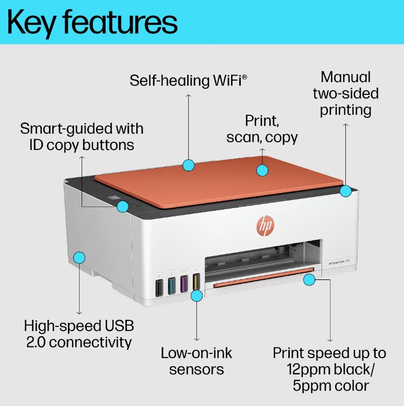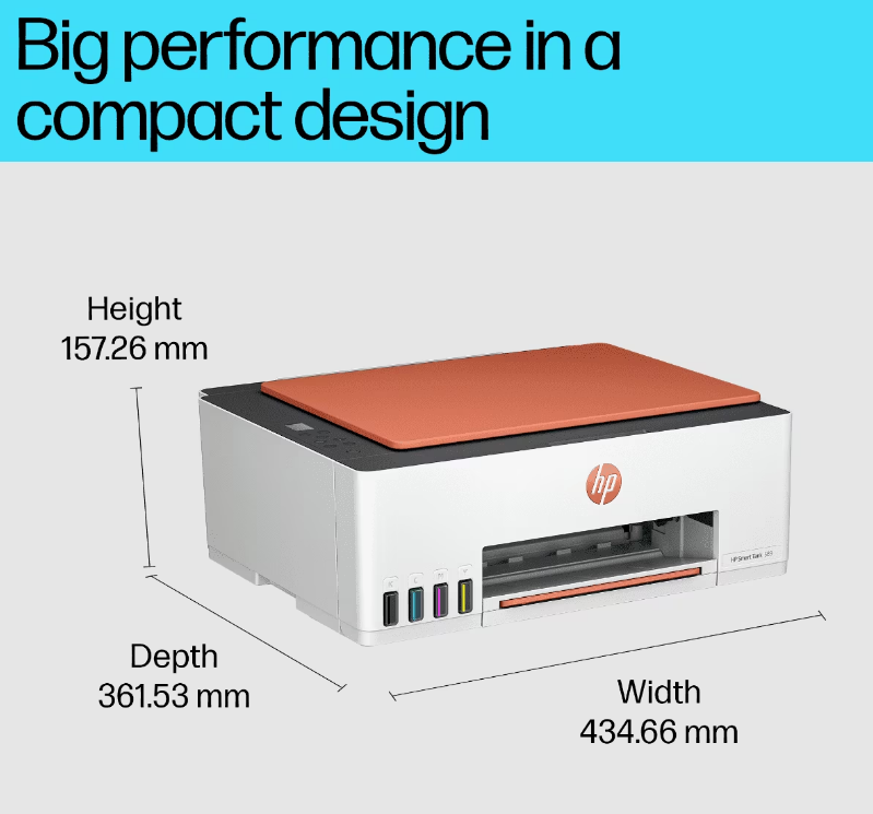 A4 Colour Smart Tank All-in-One Printer, Perfect for Home Print, Copy and Scan Print speed up to 12 ppm (black) and 5 ppm (color) USB, Wifi