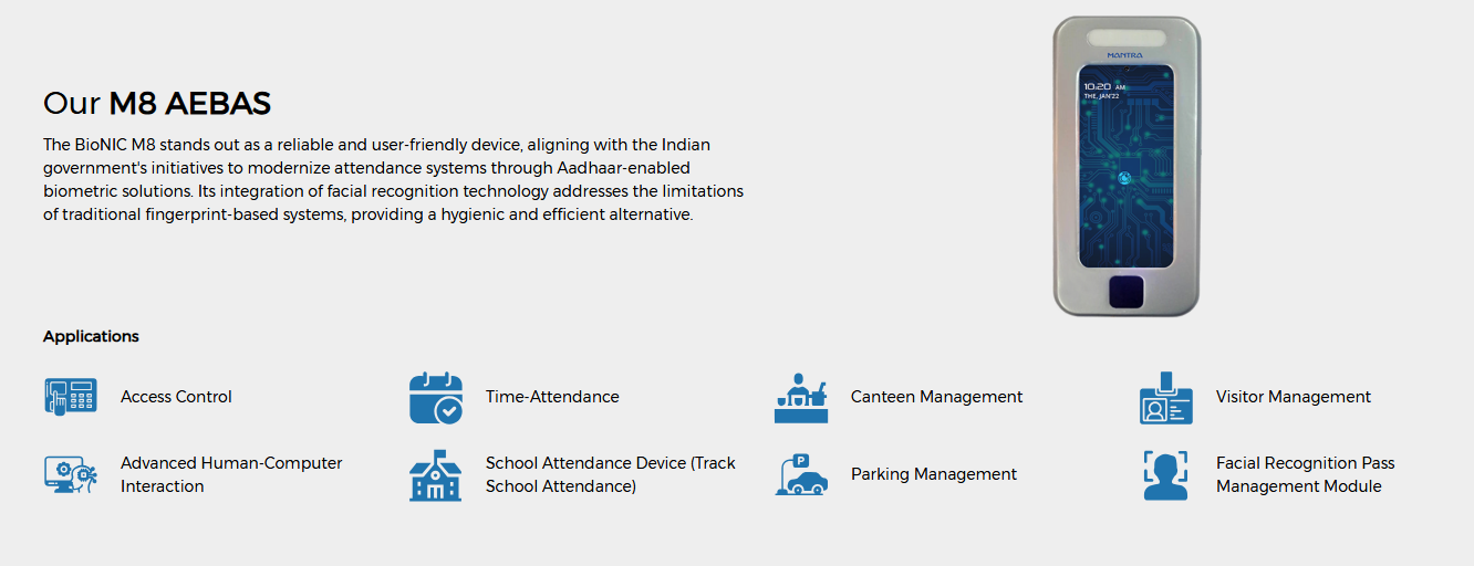 The BioNIC M8 stands out as a reliable and user-friendly device, aligning with the Indian government’s initiatives to modernize attendance systems through Aadhaar-enabled biometric solutions. Its integration of facial recognition technology addresses the limitations of traditional fingerprint-based systems, providing a hygienic and efficient alternative.