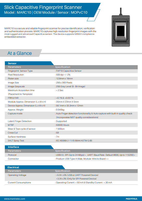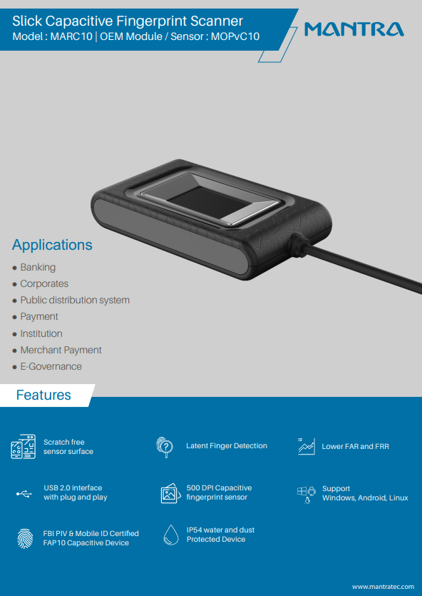 Mantra MARC10 fingerprint reader