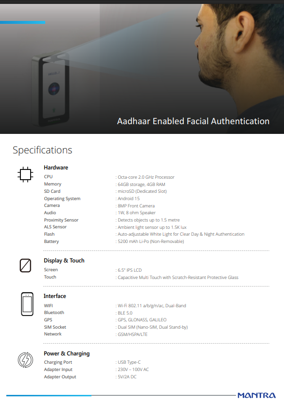 Warranty: As Per Mantra Service Center