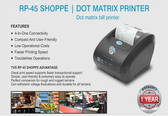 The RP 45 Shoppe is a high-performance POS Dot Matrix Printer (DMP) system, designed for fast, efficient printing, making it ideal for long duration prints and high-volume tasks. Its impressive print speed ensures smooth operations even in environments with intensive usage. Additionally, the printer’s low operational cost makes it a cost-effective solution for businesses requiring reliable, high-speed output without compromising on quality. The robust design minimises maintenance needs, ensuring trouble-free operations and long-term durability, making it perfect for retail, logistics, and other demanding sectors.