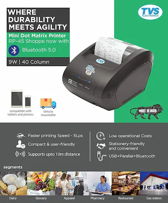 Printer TVS Ribbon Cassette External Power Adapter Parallel & USB interface cable printer software CD-ROM user manual