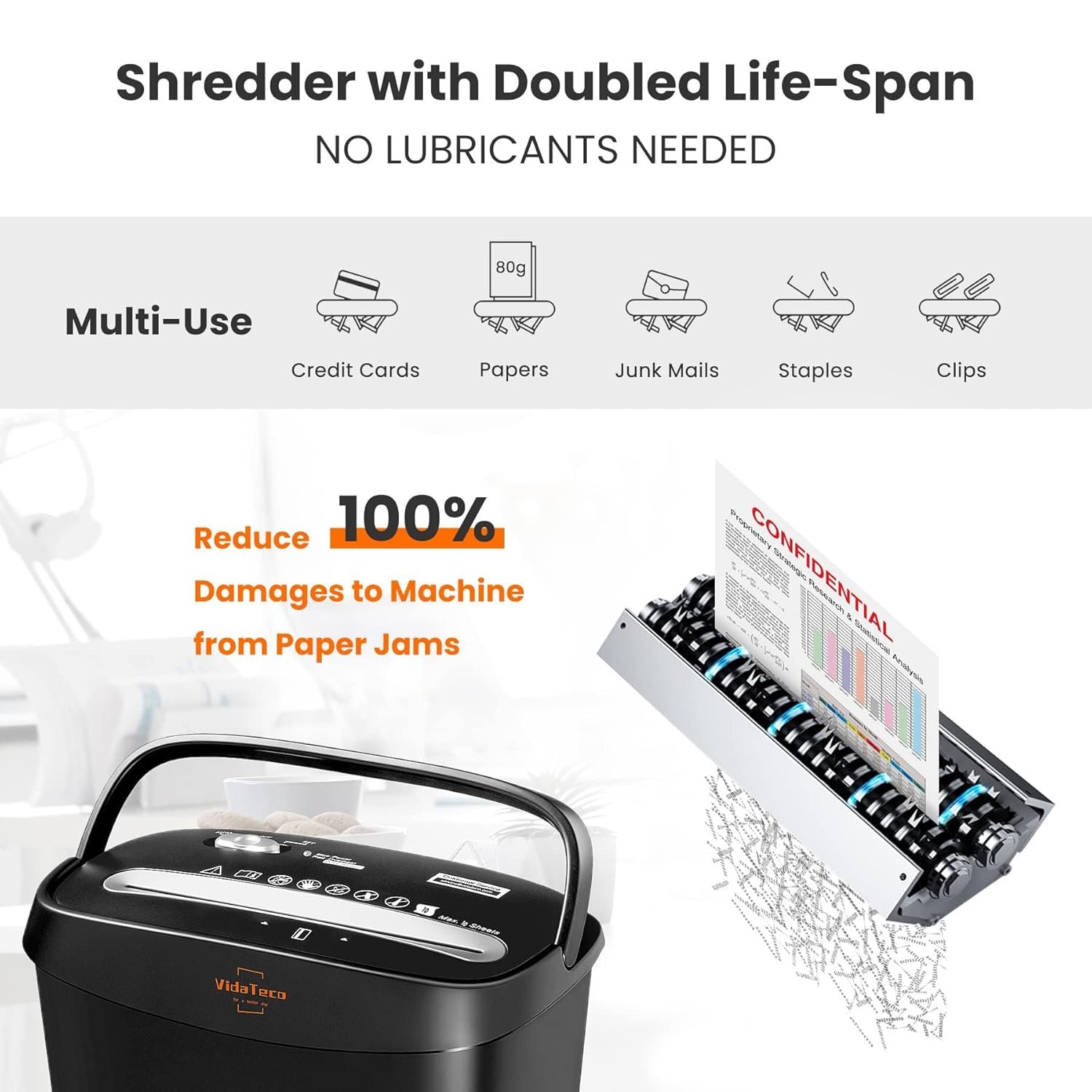 - Durable & High Efficiency: Excellent cutter can prevent damages to shredder from paper jams and prolong its life span. SEVERAL small paper particles might be left in the basket or cutter due to a full quality test by the manufacturer.